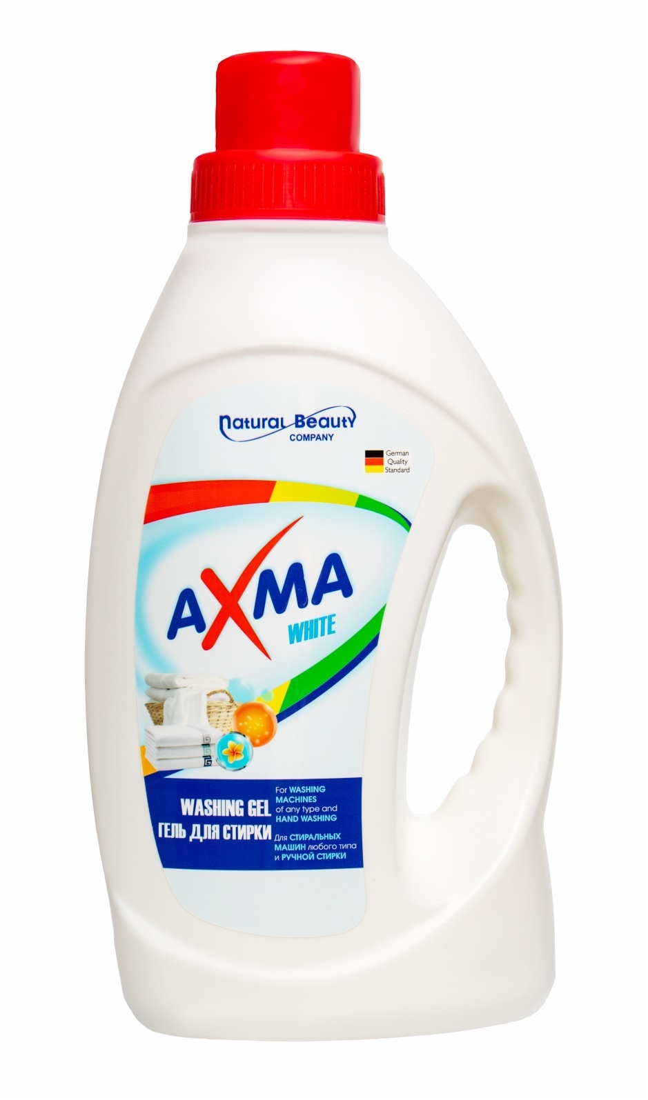 Гель для стирки Аксма для белого белья для использования в стиральных машинах любого типа и ручной стирки.